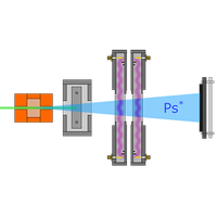The structure of positronium was measured by using the Ramsey separated oscillatory fields method.