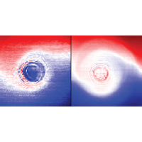 Electrons in graphene follow various spiraling paths when they flow around a circular barrier under the influence of a magnetic field.